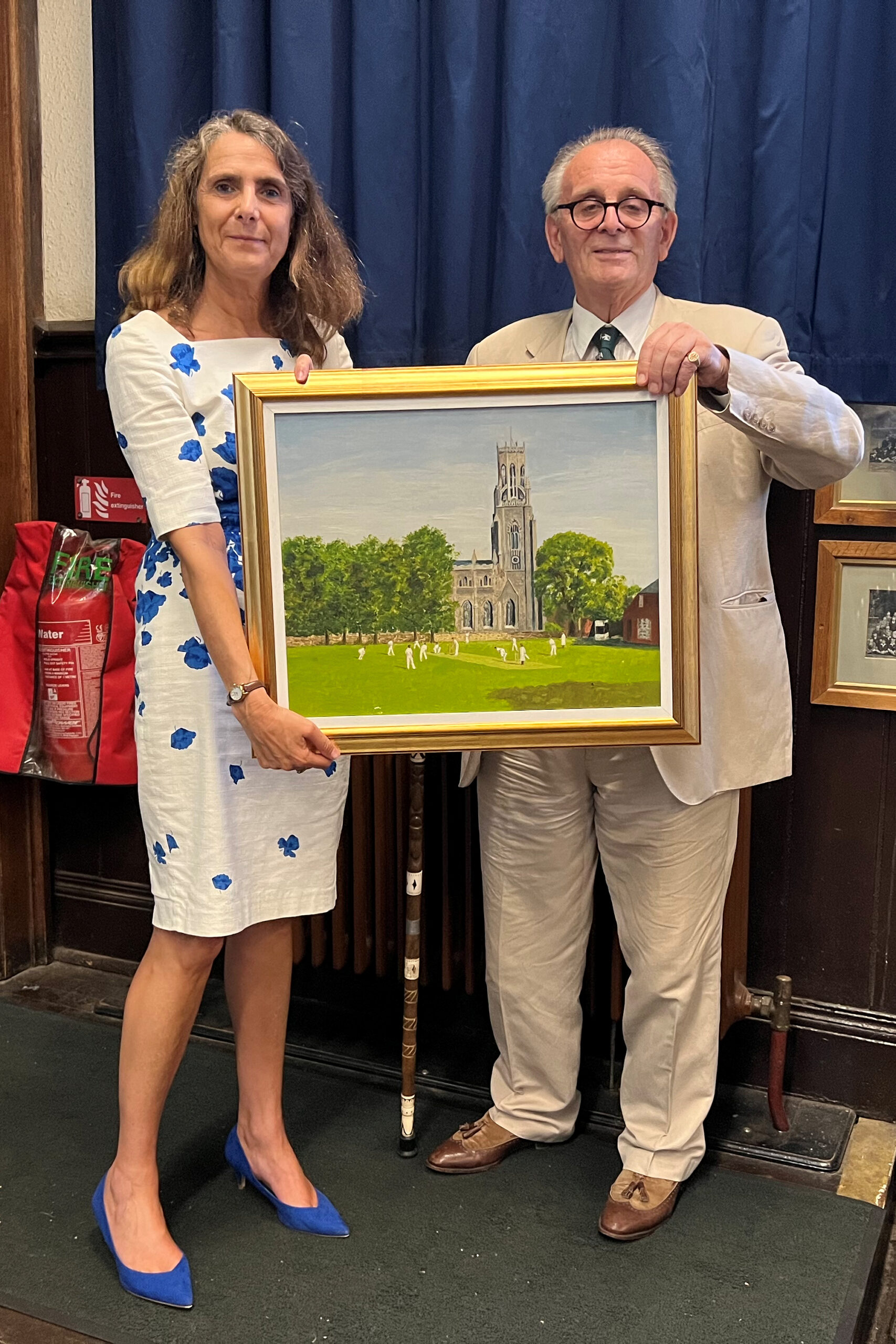 The Head Teacher Debra Liddicoat, was then presented with a painting of the Lower Cricket Square (previously the Junior Cricket Pitch) for the School, purchased by the ORC with a donation to the RNLI and re-framed by the ORC. The painting was created by an unknown artist and former pupil but came to us via the estate of the late Arthur Maxted, an Estate Agent and former pupil of the School.